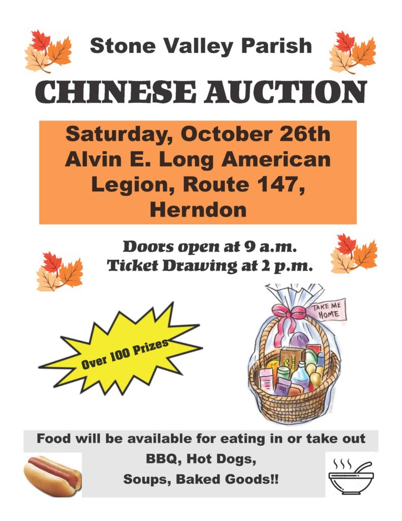 The Ladies Aide is once again holding their annual soup sale! This year Ham & Bean, Beef Vegetable, Chicken Corn and Chili will be offered at $8.00/quart. Advanced orders are appreciated (but soup will be available until sold out at the door) – to place an advanced order, fill out a form located in the back of the church, or call 570-758-4745 or 570-758-4038. The soup is always delicious, be sure to stock up the…